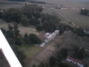 La primera dirección fue hacia la Estancia San Jacinto. Las tierras donde se instaló la suntuosa residencia y sus más de 80 mil hectáreas fueron adjudicadas a Leguizamon en 1830 por la Ley Enfiteusis. Resulta que años antes Bernardino Rivadavia había tenido la gran idea de crear pueblos en la frontera con los indios, crear un Banco, la red de agua de la Ciudad de Buenos Aires y hasta un puerto y se mostró sumamente receptivo al dinero que conformaría el Empréstito Baring Brother, proveniente de Inglaterra. Dos años más tarde, con la oportuna visita del Cónsul Británico W. Parish, Rivadavia es designado Presidente de las Provincias Unidas del Río de la Plata, nuestro primer presidente. Rivadavia necesitado de recursos decidió promover la agricultura y ganadería, pero como las tierras que formaban la hipoteca del poderoso préstamo no podía venderlas, simplemente aprobó la ley que permitía el asentamiento de productores rurales que pagarían un canon al Estado por el uso de la misma. Si originalmente tuvo la idea de fomentar el uso justo y equitativo de las tierras, pronto quedó reducido al reparto entre los personajes que hoy llenan todos los letreros de las calles de Buenos Aires. De esta forma se empezaban a formar los grandes latifundios en manos de relucientes apellidos que al cabo de poco tiempo dejaron de pagar el canon y consiguieron de la mano de Rosas y otros cómplices de la historia el apoderamiento de esas tierras en la muy fértil pampa húmeda.