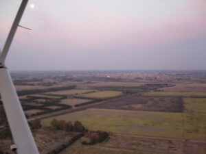 Al día siguiente de regresar a Mercedes me encuentro con un amigo del secundario, Federico Bengoechea, quien practica horas de vuelo para obtener la licencia de piloto. Muy gentilmente me invitó a recorrer parte del camino que habíamos hecho caminando, pero por el aire, para vivir la irrealidad de deshacer dos días de caminata y más de 40 km en quince minutos.