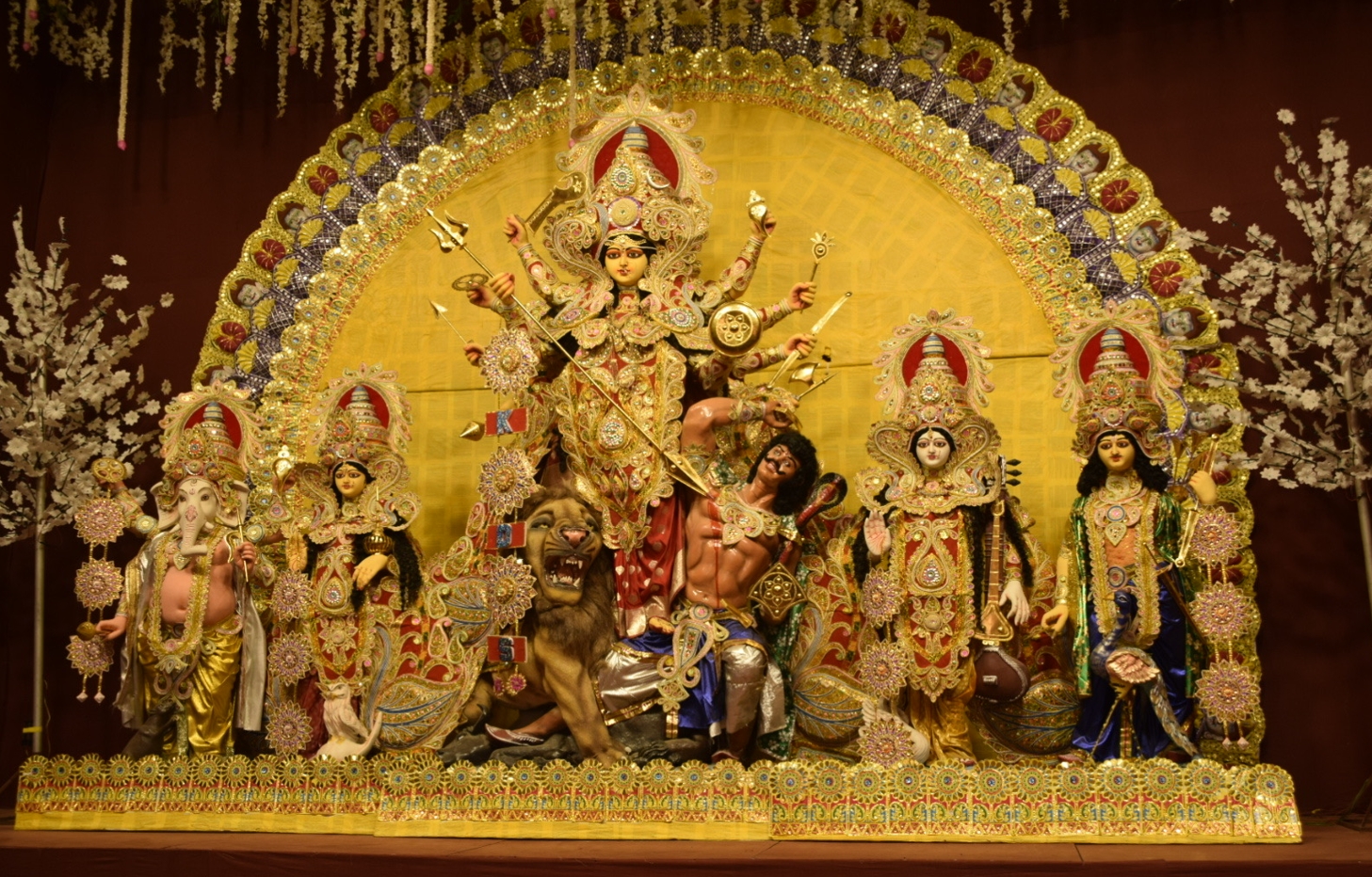 Por la mañana siguiente vino Pintu a buscarme. Varanasi es imposible recorrer sin guía. Pintu me juntó con una pareja de españoles y empezamos a recorrer la ciudad. En poco tiempo nos rebalsó de información, los dioses y los motivos del festival que nunca logré entender qué celebraba, pero en los lugares de oración estaban preparando suculentas comilonas y ofrendas. Había altares altísimos hechos con cañas, figuras con dioses y leones, espadas, luces y cosas doradas con guirnaldas.